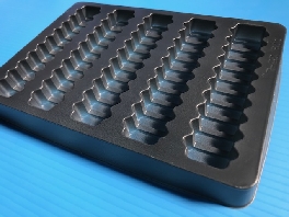 角レンズトレーは縦入れタイプで側面で部品を受けております,フィルターの角型形状等の部品に使用致します、トレーの高さより高い部品の場合は蓋の高さの高いトレーがございます